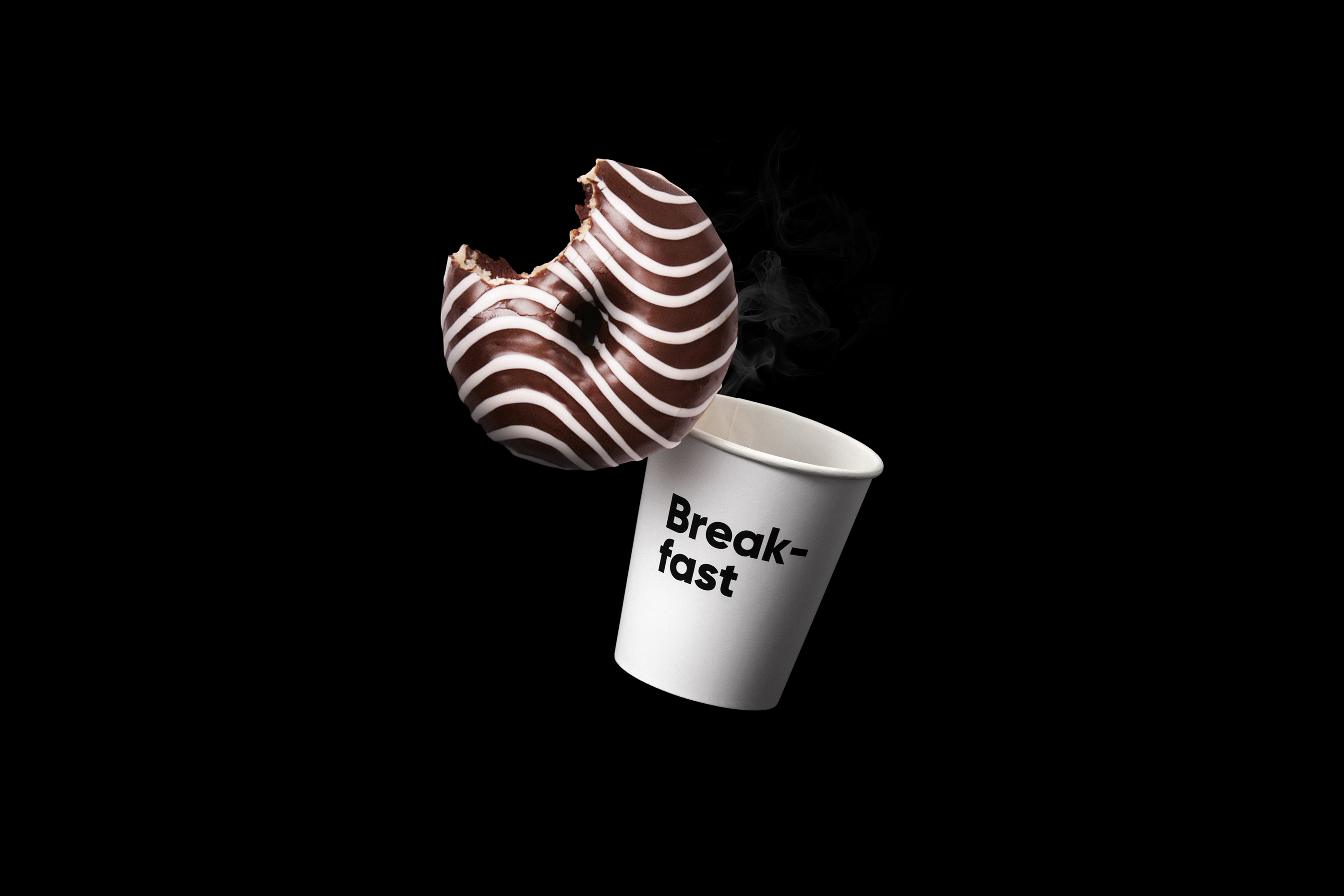 В основу визуально-вербальной конструкции айдентики легла идея, которая изначально появилась в логотипе. Поделив название на две части, получилось добиться нового прочтения знакомого слова breakfast. В переводе с английского дословно: break – перерыв, fast – быстрый.